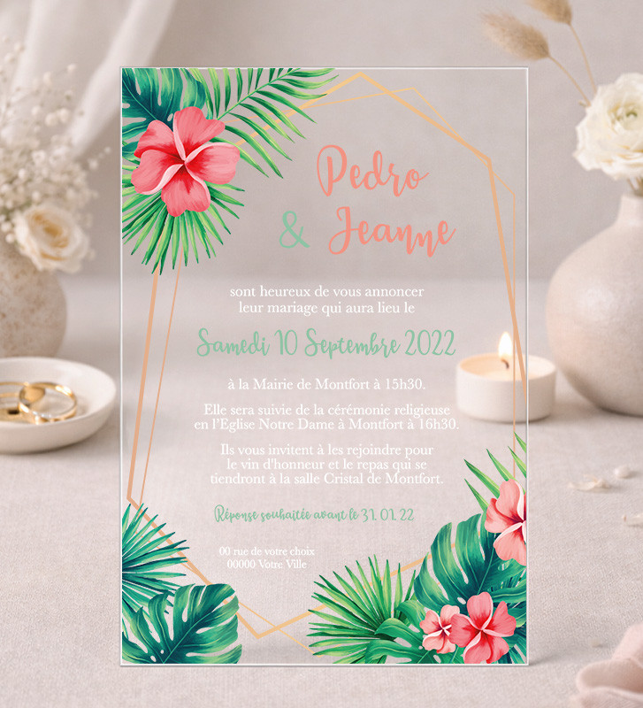Faire part de Mariage plexi acrylique - Tropical fleurs